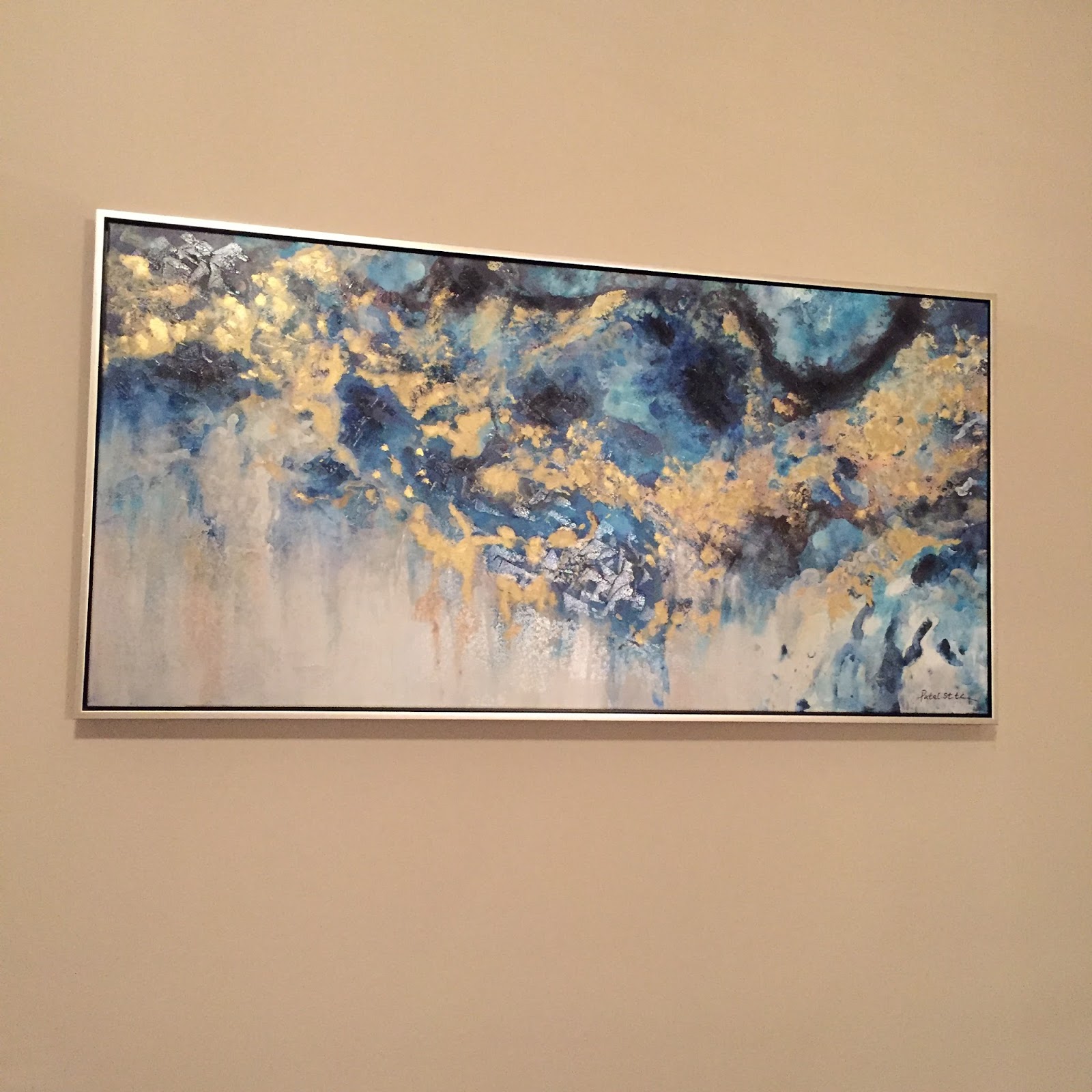 day we’d like a much larger piece on this wall but this blue and gold agate canvas