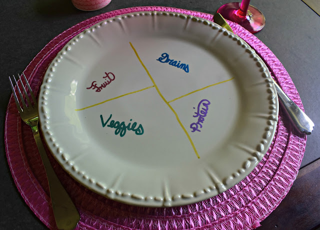 Speaking of cooking, I’ve been trying to eat healthier lately and I’m still trying to get the portions right. Since Wine Glass Writer is non-toxic I’ll just draw a quick grid on my plate to remind myself to not take too much carbs (because I love some carbs) and get enough veggies. Typically I just draw the lines, but I wanted to show y’all an example of what I would put on my plate.