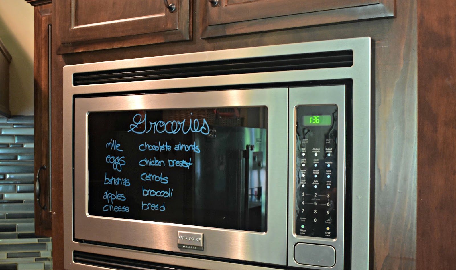 Of course, before there can be any celebrations there’s some behind the scenes work and planning that goes into hosting a great event. I have found that using the glass door on our microwave is a convenient place for me to jot down items we’re running low on or things I need for the week without having to pull out my phone while in the middle of cooking or going through paper lists that I’ll inevitably lose.