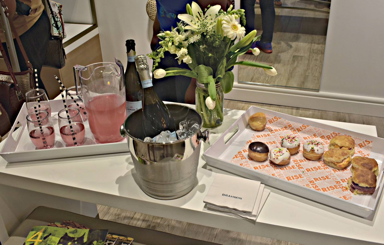 Earlier this month the new Brahmin store opened at The Shops of Saddle Creek and Memphis could not have been more excited! I arrived right before the doors opened and there was already a crowd formed ready to explore all the goodies inside. Brahmin provided some delicious champagne punch to toast to the grand opening and it wasn’t too long after the doors opened that the store was completely full – it took me 1/2 an hour to check out that’s how popular the grand opening was! But enough talk, they say a picture is worth a 1,000 words so I’m keeping the text on this post brief and just letting y’all see all the fun inside.