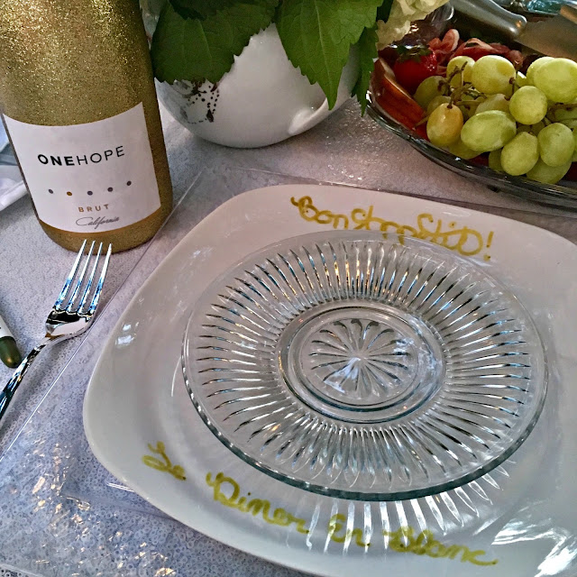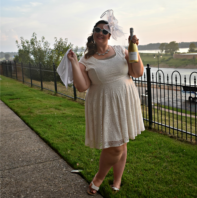 White Shaun may not have already had an all white outfit in our closet Carrie and I both did although we did both purchase new fascinators for the occasions as festive headwear does seem to be the thing to wear at DEB. Likewise between Carrie and I we already had everything most of what we needed for our table including the actual table, chairs and chair covers. I did purchase plates and glasses from the Dollar Tree because I didn’t want to risk breaking my china and crystal carrying to and from the event. Going with a friend also meant we were able to divide the preparations – I gathered all the table supplies while Carrie prepared a wonderful salad and charteurie platter. At the event we picked up a bottle of One Hope Wine sparkling brut – this was my first time trying this particular wine and while I’m usually not much of a dry fan I found it to have a just enough of a hint of sweetness to appeal to my palate and Carrie was equally impressed.