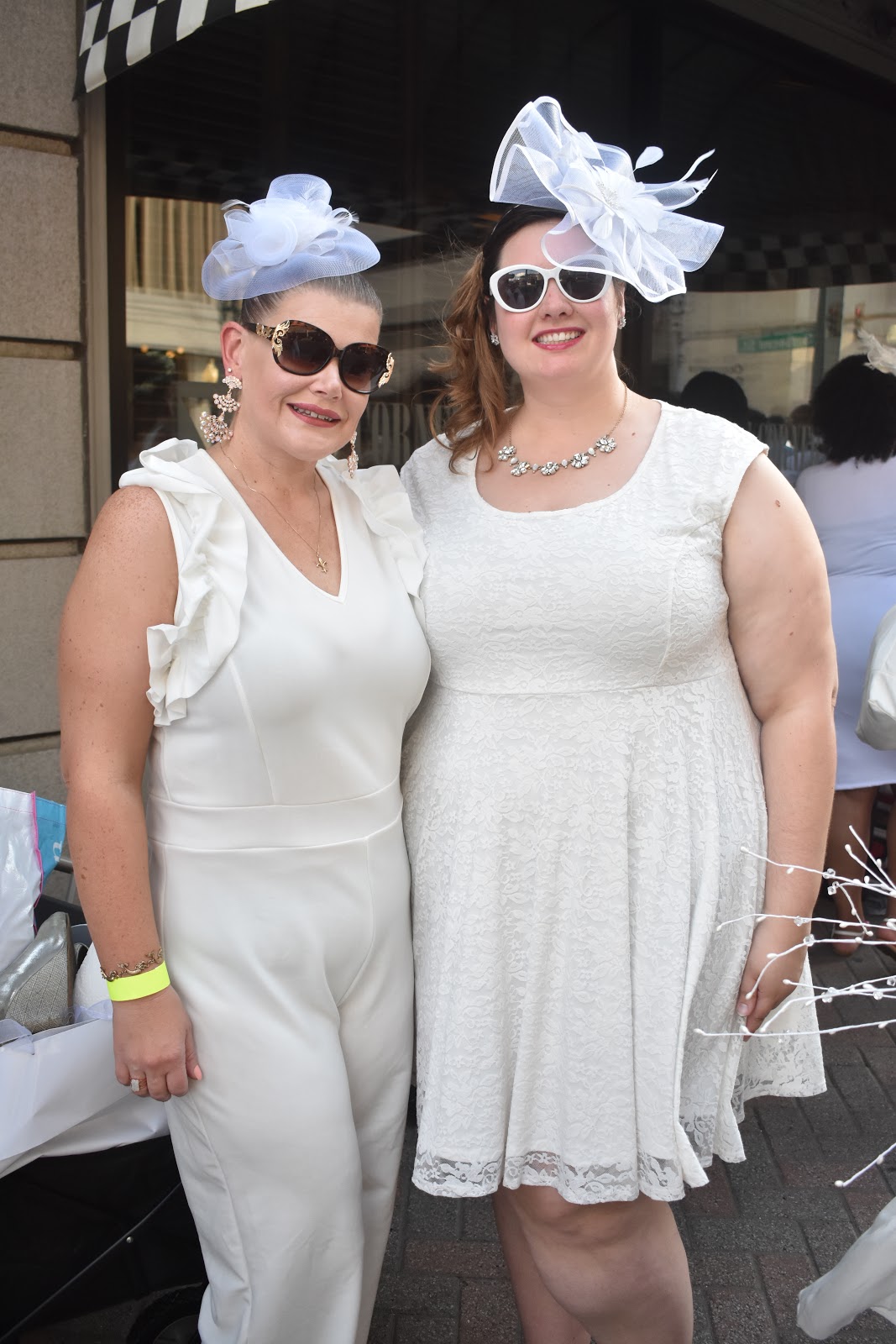 White Shaun may not have already had an all white outfit in our closet Carrie and I both did although we did both purchase new fascinators for the occasions as festive headwear does seem to be the thing to wear at DEB. Likewise between Carrie and I we already had everything most of what we needed for our table including the actual table, chairs and chair covers. I did purchase plates and glasses from the Dollar Tree because I didn’t want to risk breaking my china and crystal carrying to and from the event. Going with a friend also meant we were able to divide the preparations – I gathered all the table supplies while Carrie prepared a wonderful salad and charteurie platter. At the event we picked up a bottle of One Hope Wine sparkling brut – this was my first time trying this particular wine and while I’m usually not much of a dry fan I found it to have a just enough of a hint of sweetness to appeal to my palate and Carrie was equally impressed.