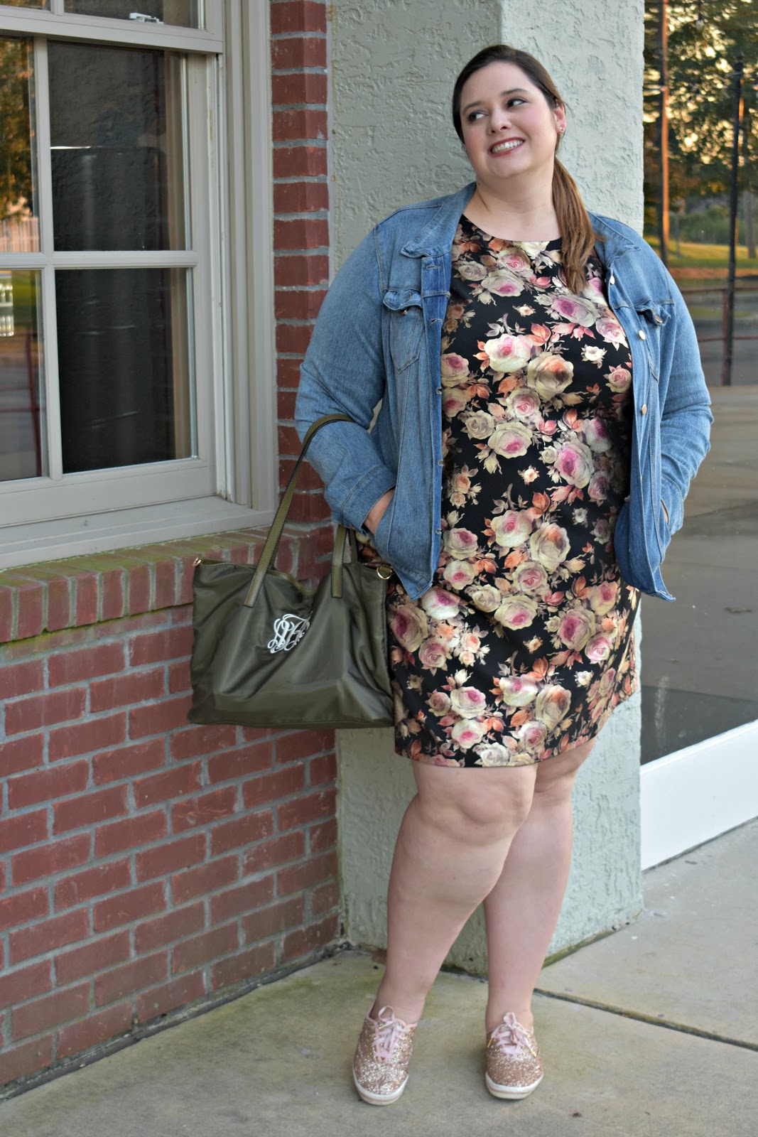As much as I love a good heel on the weekends I tend to wear flats and have a more casual style – a denim jackets is far less stuffy than a blazer and glitter keds are a fun touch to bounce off the foil floral design.