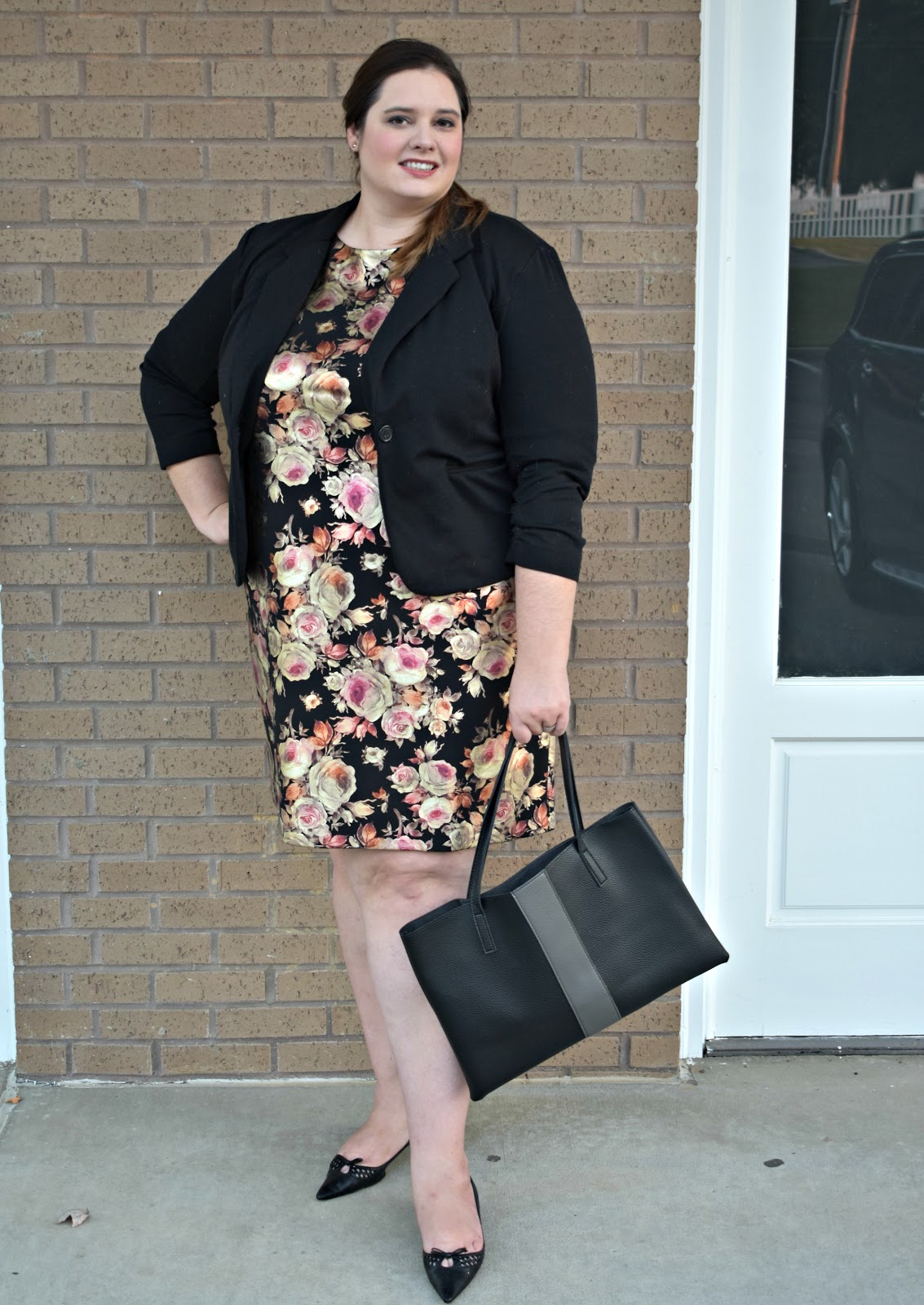 Of course, It would be foolish of me to ignore the obvious – this dress makes a great night out on the town dress. I selected simply jewelry to let the foil floral design be the star of the outfit and rounded out the look with gold heels and a neutral clutch.